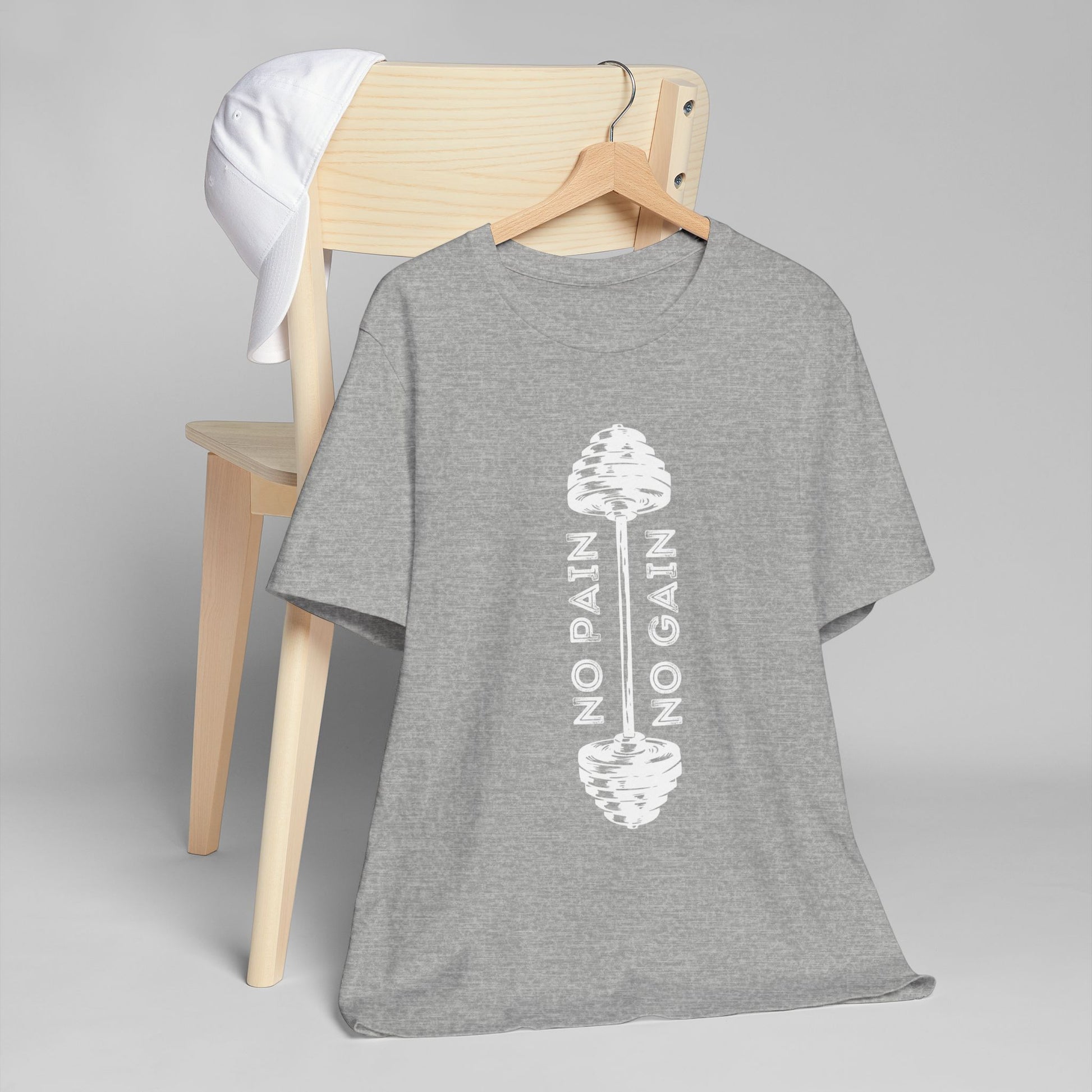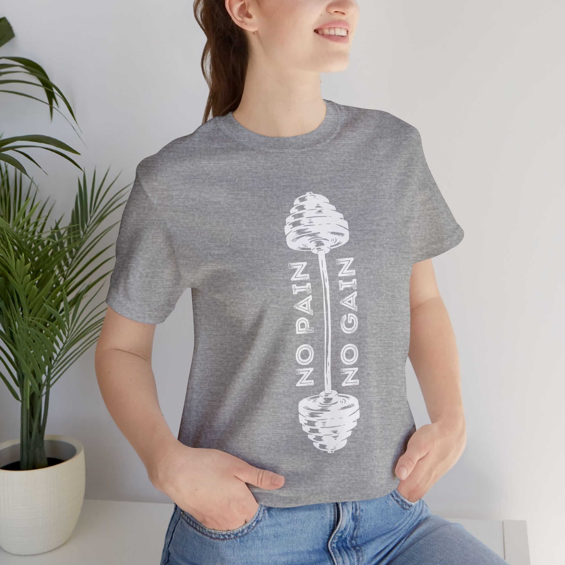 Elevate your casual wardrobe with this stylish Unisex Jersey T-Shirt, designed for both comfort and style. Made from sustainably sourced materials, it features a lightweight and breathable fabric, perfect for workouts or lounging. The ribbed knit collar and shoulder tape structure ensure durability, while the crew neckline adds a classic touch. Ideal for gym enthusiasts or anyone seeking a laid-back vibe, this tee is great for everyday wear or as a thoughtful gift. Perfect for holidays, casual gatherings, or simply to express yourself, it’s a versatile staple in any wardrobe. Wear it proudly during fitness events, national workout days, or just to motivate yourself—'No Pain, No Gain'!
